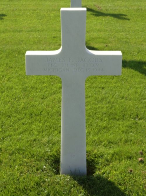 Pfc James F. Jacobs joined the Regular Army in Detroit, Michigan on 3 October 1940.Source of information: Peter Schouteten, www.abmc.gov, www.wwiimemorial.com, www.archives.gov – WWII Enlistment Record, www.ancestry.com - U.S., Headstone and Interment Records for U.S. Military Cemeteries on Foreign Soil / 1940 Census, http://83rdinfdivdocs.org – After Action Report