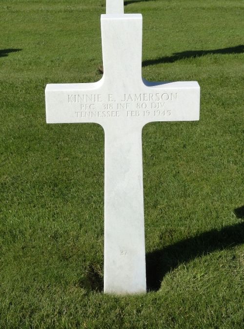 Pfc Kinnie E. Jamerson was first buried at the Temporary American Military Cemetery of Foy, Belgium.Source of information: Peter Schouteten, Carla Mans, www.abmc.gov, www.wwiimemorial.com, www.ancestry.com - Headstone and Interment Record / 1930 Census / U.S. WWII Draft Cards Young Men