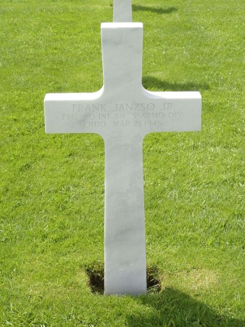 Pfc Frank Janzso Jr. enlisted in Camp Perry Lacarne, Ohio on 22 October 1942.He was first buried at Block F-4, Row 9, Grave 178.