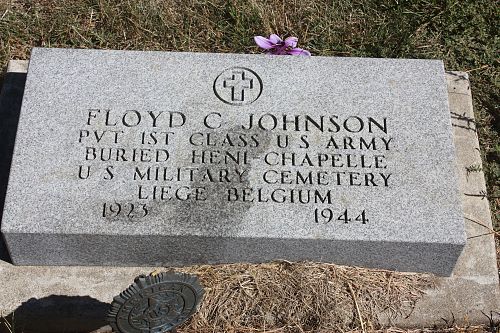 The picture of the Marker is taken on Mount Pleasant Cemetery, Quimby, Cherokee County, Iowa.Pvt Floyd C. Johnson was first buried at Temporary American Military Cemetery Fosse, Namur, Belgium.