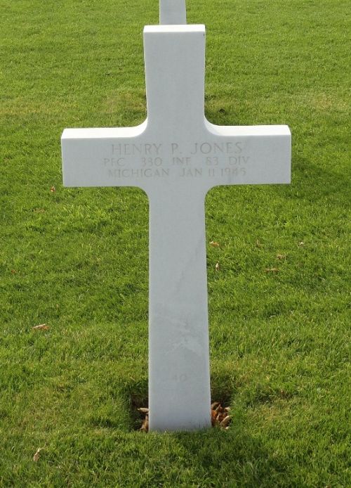 Pfc Henry P. Jones was a graduate of the Henry Ford Trade School. He went overseas in October 1944. Before entering the service he was employed by the Burton Tool & Engineering Co.Pfc Henry P. Jones joined his unit from the 92nd Replacement Battalion on 21 December 1944.