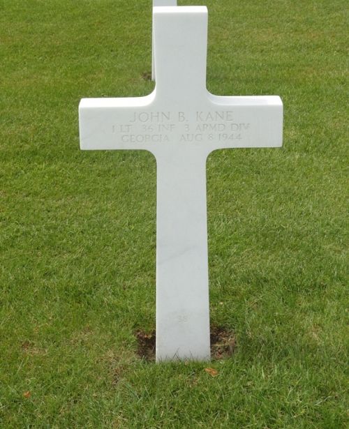 1st Lt John B. Kane graduated from Marist College, where he was cadet major in the R.O.T.C. Corps in 1938He enlisted in Fort McPherson Atlanta, Georgia on 11 July 1941. He was stationed at Camp Wheeler and attended Officers Candidate School at Fort Benning, where he received his commission on 21 August 1942.