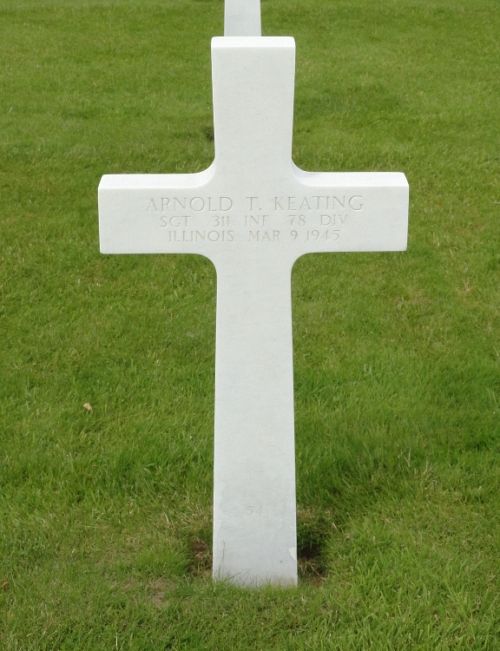 Sgt Arnold T. Keating attended Englewood High School and was employed by the Pennsylvania railroad.He enlisted at Camp Grant, Illinois on 8 January 1942.