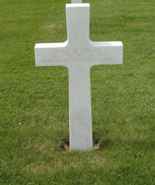 Pfc Paul E. Kelley was a chauffeur beofre he enlisted in Boston, Massachusetts on 18 November 1943.He was first buried at the Temporary American Military Cemetery of Foy, Belgium.