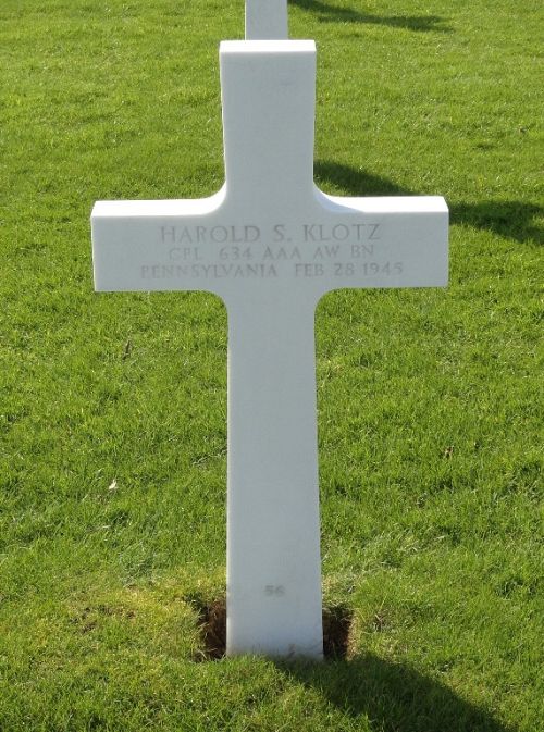 Cpl Harold S. Klotz enlisted in Allentown, Pennsylvania on 13 March 1943.He received his anti-aircraft training in military camps throughout the Carolinas. He was transferred to an iInfantry division before going overseas to England early 1945. Since then Cpl Klotz was again transferred to an anti-aircraft artillery battalion.