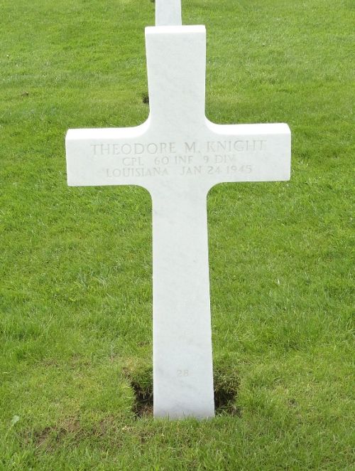 Theodore M. Knight was assistant manager of a local shoe store.He enlisted at Camp Beauregard, Louisiana on 22 March 1944.