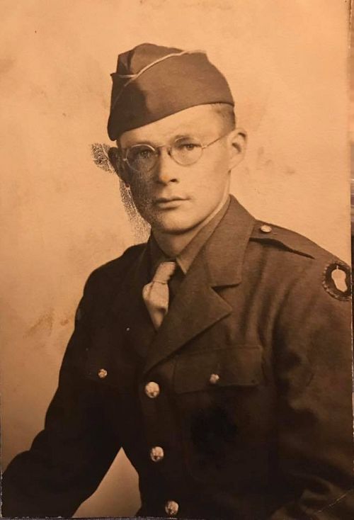 The picture was taken on 27 June 1943 at Camp McCain, Mississippi while he was serving with the Anti-Tank Company, 347th Infantry Regiment, 87th Infantry Division.