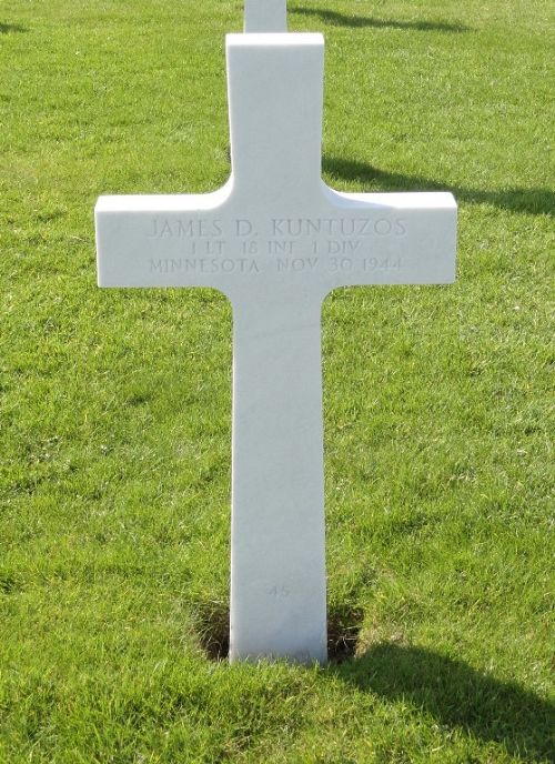 The father of 1st Lt James D. Kuntuzos was born in Greece, his mother in France.Lt Kuntuzos attended Campian College. entered the service in May 1942.