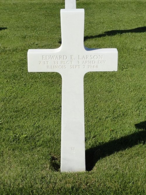 2nd Lt Edward E. Larson enlisted in Chicago, Illinois on 16 November 1942.First buried at Temporary American Military Cemetery Fosse, Belgium Block H, Row 3, Grave 53.