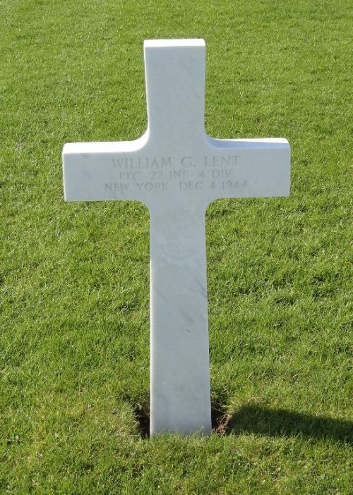 Pfc William G. Lent graduated from Haverling High School and was a foreman at the Mercury Aircraft Corporation.He enlisted at Fort Dix, New Jersey on 18 March 1944 and was sent overseas on 28 October 1944.