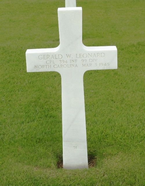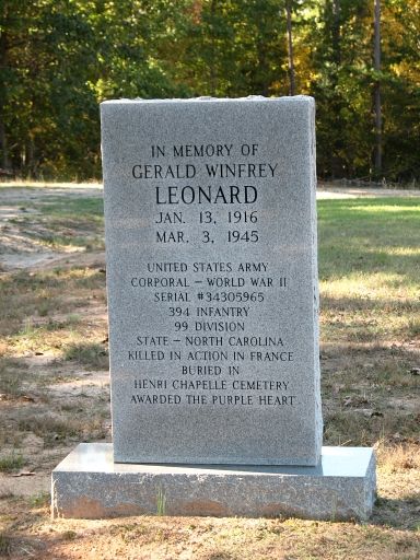 Cpl Gerald W Leonard is remembered at the Falls Community Cemetery in Falls, Wake County, North Carolina.