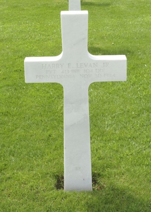 Pvt Harry E. Levan Jr. was a draftsman before he enlisted in New Cumberland, Pennsylvania on 17 May 1944.Source of information: Raf Dyckmans, Carla Mans, Kathy McDermott, www.abmc.gov, www.wwiimemorial.com, www.archives.gov - WWII Enlistment Record, www.ancestry.com - various family trees / Headstone and Interment Record