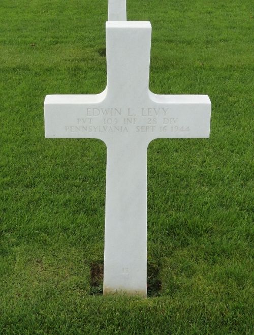 Pvt Edwin L. Levy enlisted in Pittsburgh, Pennsylvania on 26 August 1943.He was first buried at the Temporary American Military Cemetery of Foy, Belgium.
