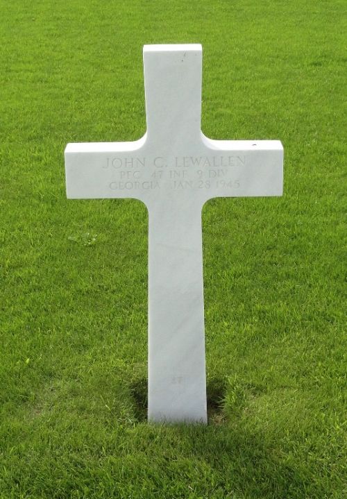 Pfc John C. Lewallen worked on a farm before he enlisted in Fort McPherson Atlanta, Georgia on 6 May 1943.Source of information: Peter Schouteten, Carla Mans, www.abmc.gov, www.wwiimemorial.com, www.archives.gov - WWII Enlistment Record, www.ancestry.com - Headstone and Interment Record / 1930/1940 Census, http://9thinfantrydivision.net