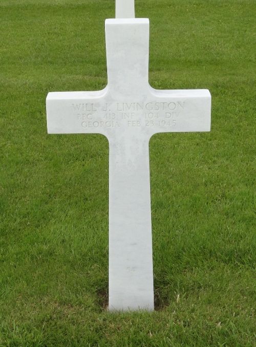 Pfc Will J. Livingston worked on a farm before he enlisted at Fort McPherson, Georgia on 20 May 1944.Source of information: Raf Dyckmans, Carla Mans, www.abmc.gov, www.wwiimemorial.com, www.archives.gov - WWII Enlistment Record, www.ancestry.com - Headstone and Interment Record / U.S. WWII Draft Cards Young Men
