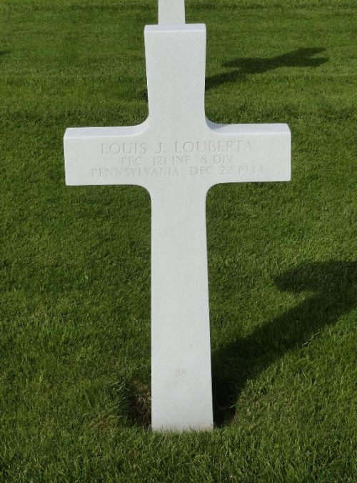 Pfc Louis J. Louberta enlisted in Newark, New Jersey on 14 May 1943.Source of information: Raf Dyckmans, Peter Schouteten, Carla Mans, www.abmc.gov, www.wwiimemorial.com, www.archives.gov – WWII Enlistment Record, www.ancestry.com - Headstone and Interment Record / 1930 Census, http://cgsc.contentdm.oclc.org - After Action Report 121st Infantry Regiment