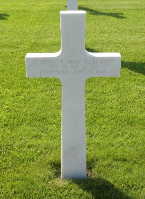 Pvt Robert F. Mac Farland was a bartender.He enlisted at Fort MacArthur, San Pedro, California on 4 April 1944.