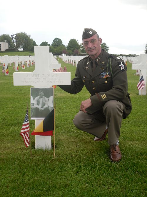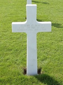 Albert Clarence Mack attended Immaculate Conception High School and worked in a paper mill.He enlisted on 26 April 1941 in Altoona, Pennsylvania. He was selected for Officer's Candidate School and was commissioned as a second lieutenant in June of 1943. He joined his unit on 15 July 1944.