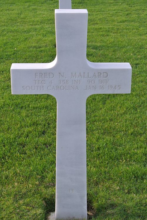 T/4 Fred N. Mallard joined the Regular Army at Fort Moultrie, South Carolina on 28 August 1941.He was first buried at the Temporary American Military Cemetery of Foy, Belgium.