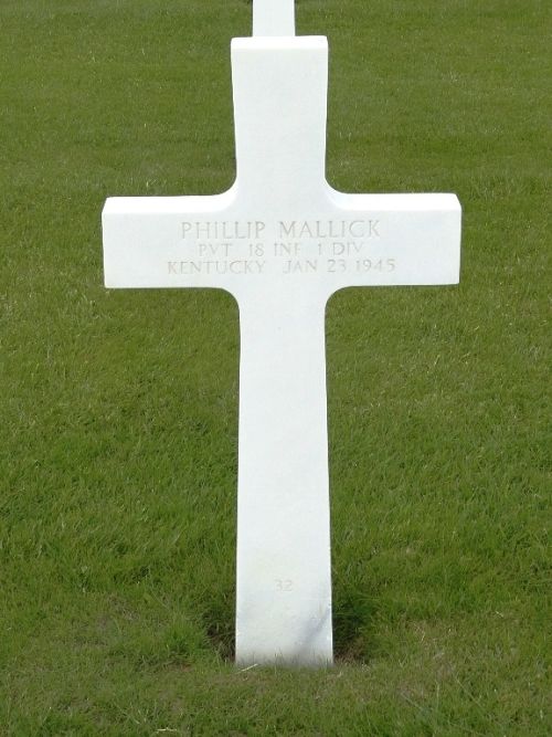 Pvt Phillip Mallick immigrated at the age of 12. He worked in his brother's restaurant before he joined the Army of the United States at Fort Knox, Kentucky on 12 September 1940. He was sent overseas in 1944.Source of information: Raf Dyckmans, www.abmc.gov, www.wwiimemorial.com, www.archives.gov - WWII Enlistment Record, www.ancestry.com - Headstone and Interment Record, www.newspapers.com - The Courier-Journal