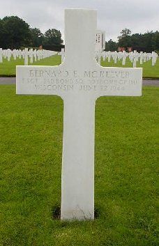 Bernard Mc Keever graduated from Oconto Falls High School and was a beaterman at the Falls Paper and Powem Co.The airplane received a direct hit from flak, just after bombs away. It was hit just back of #3 engine, probably in the gas tank. Immediately it burst into flames, spun off to the right and went down. Both wings snapped off as it went down.