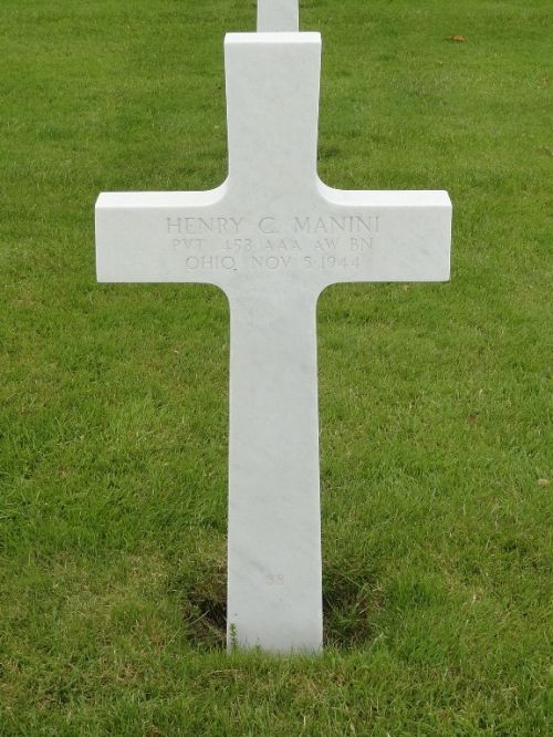 Pvt Manini was a graduate of Uhrichsville High School, class of 1938. Inducted into the army on October 3, 1942, he received training in camps in Texas, Georgia, Kentucky and North Carolina and was sent overseas in February where he was stationed with an anti-aircraft division.Source of information: Terry Hirsch, Leo Minne, Astrid van Erp, www.abmc.gov, www.ancestry.com - 1930/1940 Census / Headstone and Interment Record, http://83rdinfdivdocs.org, www.newspapers.com - The Daily Times