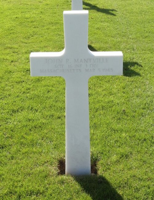 Sgt Mantville saw action in North Africa, Sicily and landed in Normandy on D-Day.He was awarded the Distinguished Service Cross posthumously. The citation cited: 'The President of the United States of America, authorized by Act of Congress, July 9, 1918, takes pride in presenting the Distinguished Service Cross (Posthumously) to Sergeant John R. Mantville for extraordinary heroism in connection with military operations against an armed enemy while serving with Company I, 3d Battalion, 16th Infantry Regiment, 1st Infantry Division, in action against enemy forces on 5 March 1945. On that date, Sergeant Mantville's company attacked to seize high ground east of Weilerswist, Germany. The enemy counterattacked in force, pinning down the company with intense automatic fire, threatening both flanks. Against this fire, completely disregarding his own safety, Sergeant Mantville crawled forward towards the enemy positions, armed with a submachine gun and hand grenades, then fearlessly charged a second machinegun, firing as he advanced. He destroyed the gun and killed the three defenders but was himself fatally wounded by an explosive mine. Even then this courageous soldier would not permit his comrades to expose themselves to come to his aid. Sergeant Mantville's heroic determination, personal bravery and supreme devotion to duty at the cost of his life, exemplify the highest traditions of the military forces of the United States and reflect great credit upon himself, the 1st Infantry Division, and the United States Army.'
