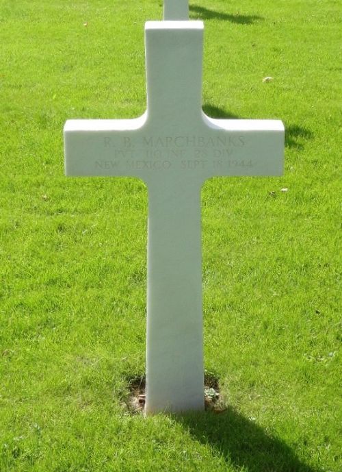 Pvt R. B. Marchbanks enlisted in Santa Fe, New Mexico.Source of information: André Koch, www.abmc.gov, www.wwiimemorial.com, www.archives.gov - WWII Enlistment Record, www.ancestry.com - 1930/1940 Census / U.S., Headstone and Interment Records for U.S. Military Cemeteries on Foreign Soil / New Mexico World War II records, www.findagrave.com