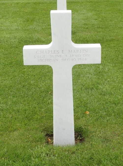 S/Sgt Charles E. Martin was first buried at Temporary American Military Cemetery Henri-Chapelle, Belgium Block GG, Row 10, Grave 186.
