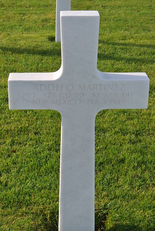 Pvt Adolfo Martinez enlisted in Santa Fe, New Mexico on 8 February 1942.He joined his unit on 24 December 1944. The day before his death he suffered a head wound from schrapnel. On that day his unit was ordered to attack Udenbreth, Germany.