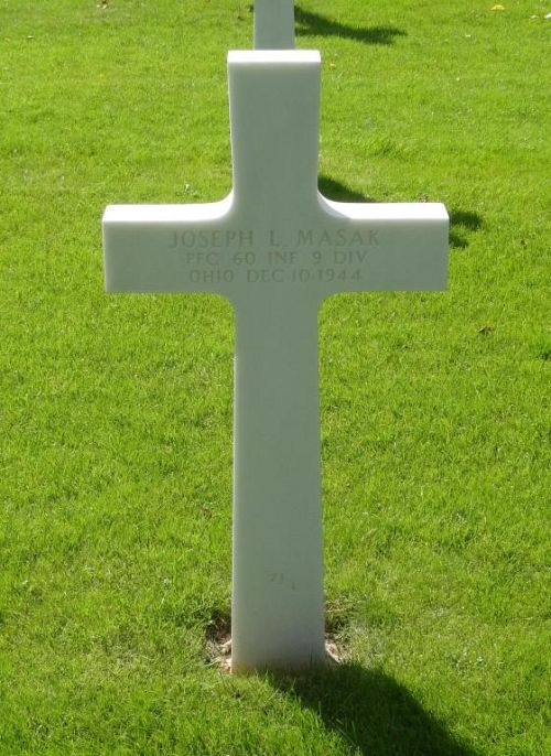 Pfc Joseph L. Masak enlisted in Cleveland, Ohio on 25 January 1944.Source of information: Peter Schouteten, Carla Mans, www.abmc.gov, www.wwiimemorial.com, www.archives.gov - WWII Enlistment Record, www.ancestry.com - Headstone and Interment Record / U.S. WWII Draft Cards Young Men / 1930 Census, http://9thinfantrydivision.net