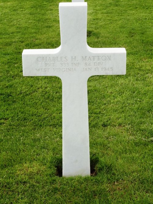 Pvt Charles H. Mattox initial burial took place on Foy Cemetery, Bastogne, Belgium.Source of information: André Koch, www.abmc.gov, www.wwiimemorial.com, www.ancestry.com - 1910/1930/1940 Census / Rhonda Fleming Family Tree / Warner Mattox Mauzy Steele Arbogast Gibs Vince Mckinney Family Trees-Strong Roots Many Branches and Lots of Leaves / Headstone and Interment Record