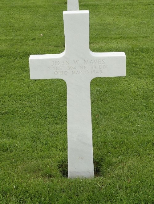 S/Sgt John W. Maves graduated from Cleveland Heights High School and attended the University of Minnesota.He joined the Air Corps of the U.S. Army Reserve in Minneapolis, Minnesota on 14 October 1942. He was later transferred to the infantry.
