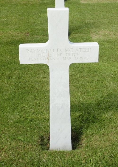 Pfc Raymond D. Mc Ateer enlisted in Philadelphia, Pennsylvania on 10 February 1943.He attended high school for 1 year and worked in a machine shop before he enlisted.