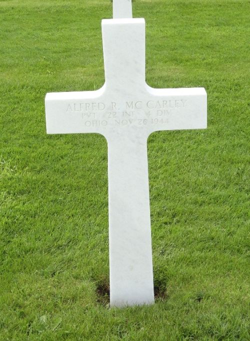Pvt Alfred R. McCarley was a chauffeur before he enlisted in Huntington, West Virginia on 15 March 1941.Source of information: Danny van der Groen, www.abmc.gov, www.wwiimemorial.com, www.archives.gov – WWII Enlistment Record, www.ancestry.com – U.S., Headstone and Interment Records for U.S. Military Cemeteries on Foreign Soil / Thomas Family Tree