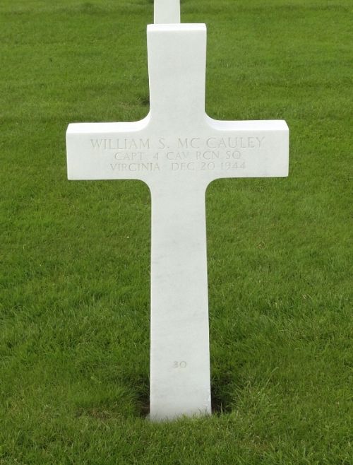 Capt William S. Mc Cauley graduated from the Virginia Military Institute in Lexington, Virginia in 1941. He was commissioned as 2nd Lt on his graduation.The following letter to Captain William S. Mc Cauley's mother from Lieutenant-Colonel E. C'. Dunn, Fourth Cavalry, is self-explanatory: "Although by this time you will have received official notification from the War Department of the death of your son, Captain William S. Mc Cauley, 0-024642, I am writing 'this letter for Colonel Macdonald, and the rest of the officers of the Fourth Cavalry, with the hope that perhaps the circumstances surrounding his supreme sacrifice may be of some comfort to you.