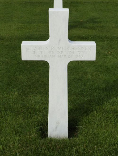 2nd Lt. Charles R. Mc Chesney graduated from Highland Park High School.He enlisted in Detroit, Michigan on 27 May 1941 and was overseas for seven months when he was killed.