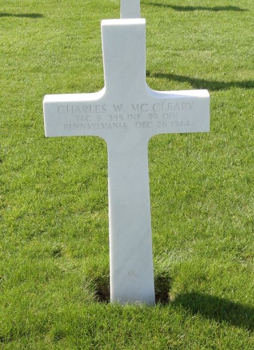 T/5 Charles W. Mc Cleary worked on a farm.He enlisted in Harrisburg, Pennsylvania on 8 December 1942 and trained at Camp Van Dorn, Mississippi and Camp Maxey, Texas. He was sent overseas in September 1944.