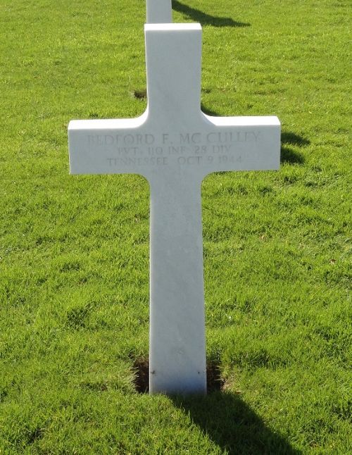 Pvt Bedford F. Mc Culley enlisted at Camp Forrest, Tennessee on 29 January 1944.Source of information: André Koch, Carla Mans, www.abmc.gov, www.wwiimemorial.com, www.archives.gov – WWII Enlistment Record, www.ancestry.com - 1930 Census / Headstone and Interment Record / U.S. WWII Draft Cards Young Men