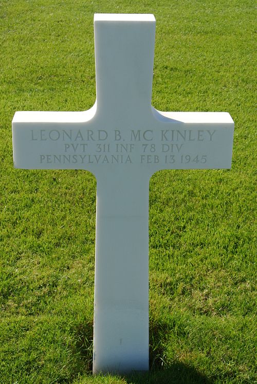 Pvt. Leonard B. McKinley, 25, son of Mr. and Mrs. George McKinley, of Polk, and husband of Mrs. Mabel McCarthy McKinley, of 236 Buffalo Street, was killed in action in Germany on Feb. 13, according to a War Department message received by his wife.Details of the action in which Pvt. McKinley was killed were not given in the telegram, which said a confirming letter would follow.