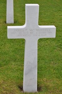 Pfc James F. Mc Murtrey was first buried at Temporary American Military Cemetery Fosse, Belgium Block I, Row 7, Grave 124.Source of information: Peter Schouteten, Carla Mans, www.abmc.gov, www.wwiimemorial.com, www.ancestry.com - Headstone and Interment Record / Arkansas, Birth Certificates / 1930 Census