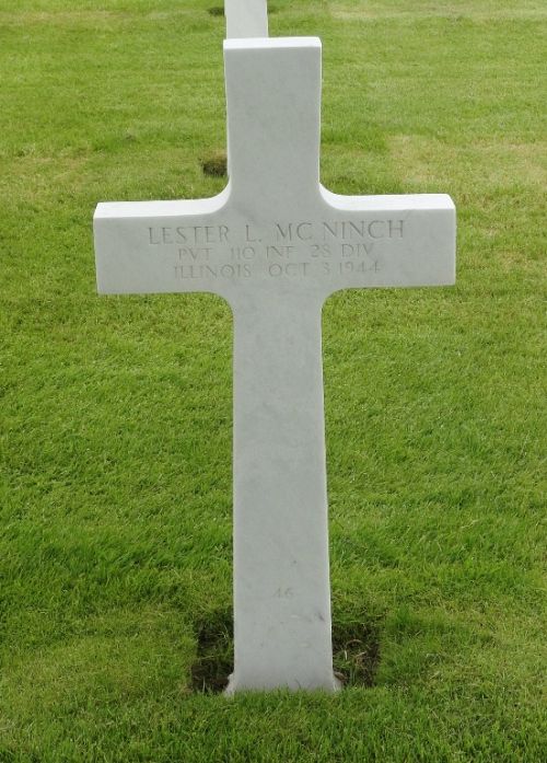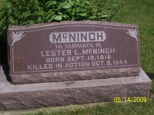 Lester Mc Ninch is remembered at the Evergreen Cemetery, Lee County, Illinois.Source of information: André Koch, www.abmc.gov, www.wwiimemorial.com, www.ancestry.com, 1920/1930 Census, Children of William and Annis Tree, Headstone and Interment Record