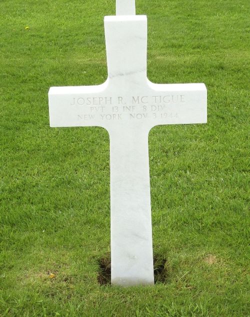 Pvt Joseph R. Mc Tigue enlisted in Buffalo, New York on 29 January 1944.Source of information: Raf Dyckmans, www.abmc.gov, www.wwiimemorial.com, www.archives.gov - WWII Enlistment Record, www.ancestry.com - U.S., Headstone and Interment Records for U.S. Military Cemeteries on Foreign Soil, 1942-1949, http://cgsc.contentdm.oclc.org - History of the 13th Infantry Regiment, After Action Report of the 13th Infantry Regiment