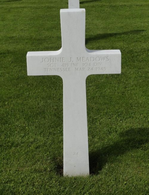 Sgt Johnie J. Meadows was a chauffeur before he enlisted at Fort Oglethorpe, Georgia on 25 June 1941.Source of information: Raf Dyckmans, Carla Mans, www.abmc.gov, www.wwiimemorial.com, www.archives.gov - WWII Enlistment Record, www.ancestry.com - Headstone and Interment Record / U.S. WWII Draft Cards Young Men