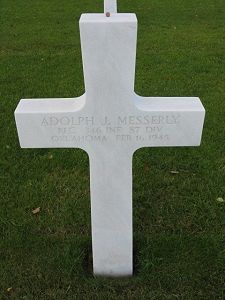 Pfc Adolph J. Messerly worked at a filling station.He enlisted in Oklahoma City, Oklahoma on 16 July 1942. He was sent overseas in January 1945.