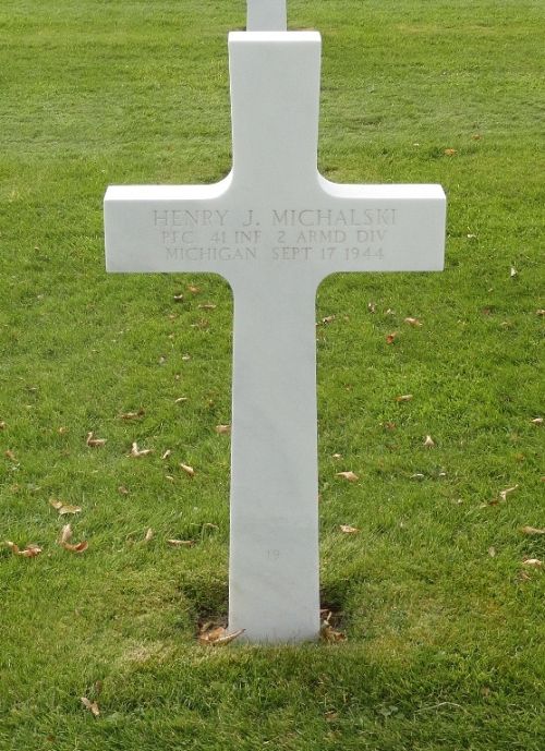 Pfc Henry J. Michalski was first buried at the Temporary American Military Cemetery of Fosse, Belgium.Note: In the ABMC database, the 41st Armored Infantry Regiment is incorrectly listed as the 41st Infantry Battalion.