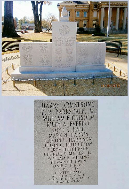 His name is listed on the Union County War Memorial, located in the Court House Lawn in New Albany, Union County, Miississippi.