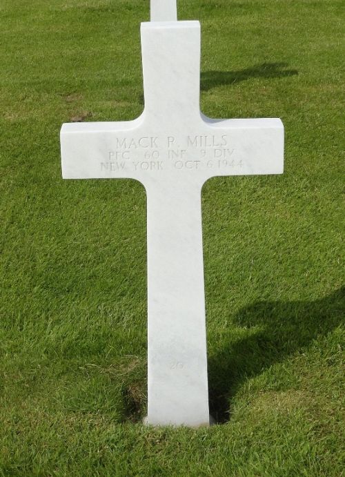 Pfc Mack R. Mills enlisted in Syracuse, New York on 7 July 1943.Source of information: Peter Schouteten, Carla Mans, www.abmc.gov, www.wwiimemorial.com, www.archives.gov – WWII Enlistment Record, www.ancestry.com - Headstone and Interment Record / 1930 Census / U.S. WWII Draft Cards Young Men, http://9thinfantrydivision.net