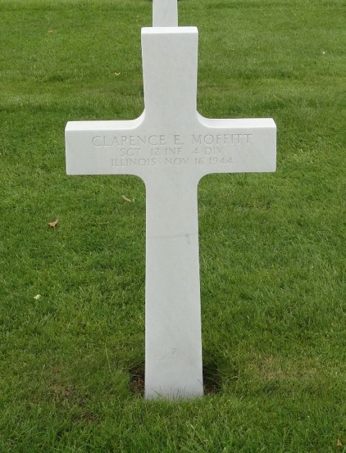 Sgt Clarence E. Moffitt attended Bloomington High School.Source of information: Danny van der Groen, Erwin Derhaag, www.abmc.gov, www.ancestry.com - U.S., Headstone and Interment Record for U.S. Military Cemeteries on Foreign Soil / 1930 Census / Various Family Trees, The Pantagraph Bloomington, Illinois 14 & 28 December 1944
