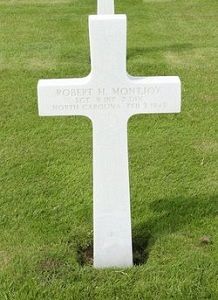 Sgt Robert H. Montjoy enlisted at Fort Bragg, North Carolina on 1 October 1944.He was a weaver before he enlisted. He is mentioned on a memorial plaque at the Court Square in Shelby, Cleveland County, North Carolina.